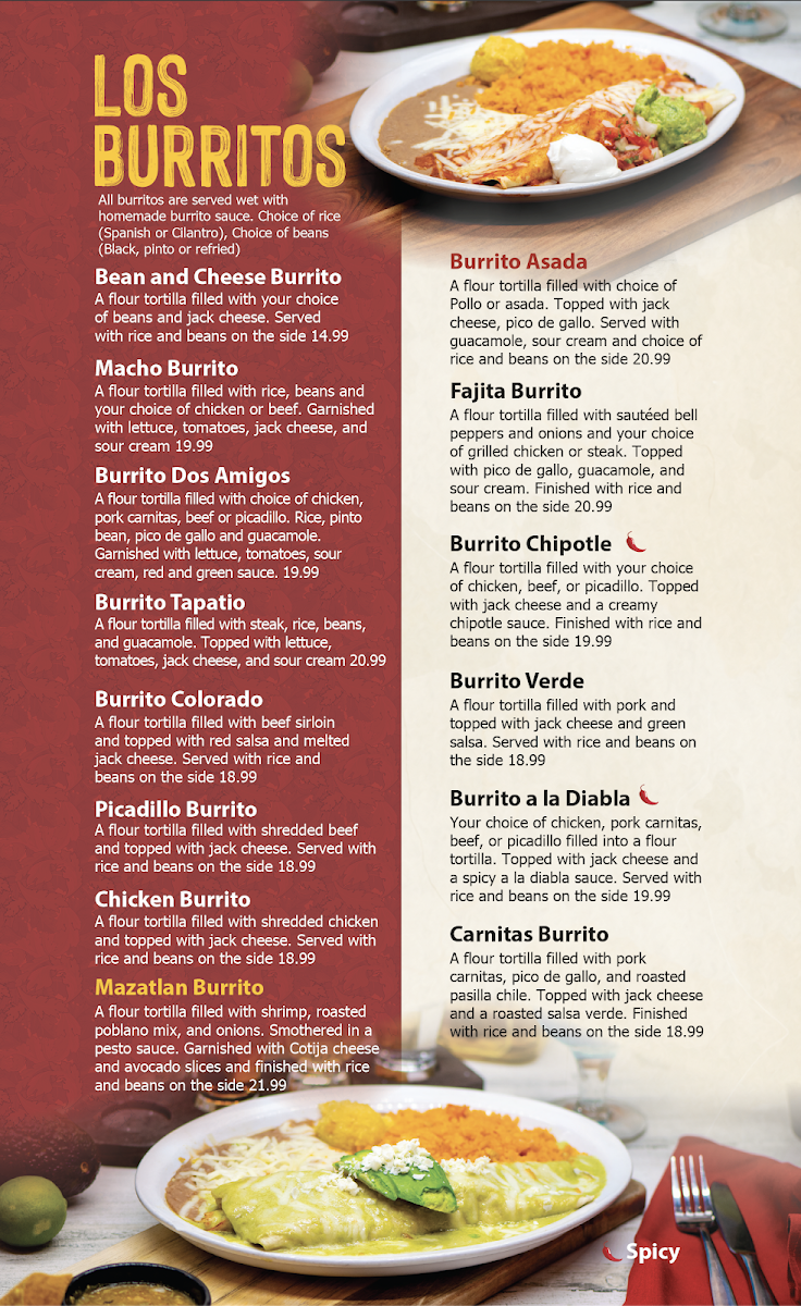 Welcome to El Tapatio Mexican Restaurant, a vibrant culinary gem nestled in Citrus Heights, California. This restaurant combines authentic Mexican flavors with a lively atmosphere where you can enjoy dining with friends or family. The highlight of the menu are the Sunset Enchiladas, featuring two enchiladas with your choice of meat, complemented by salsa Verde and topped with perfectly cooked eggs. For those seeking a classic favorite, the Deluxe Enchilada Tapatia offers a delightful twist with a filling of chicken, ground beef, or picadillo enveloped in a warmed tortilla and smothered in enchilada sauce.